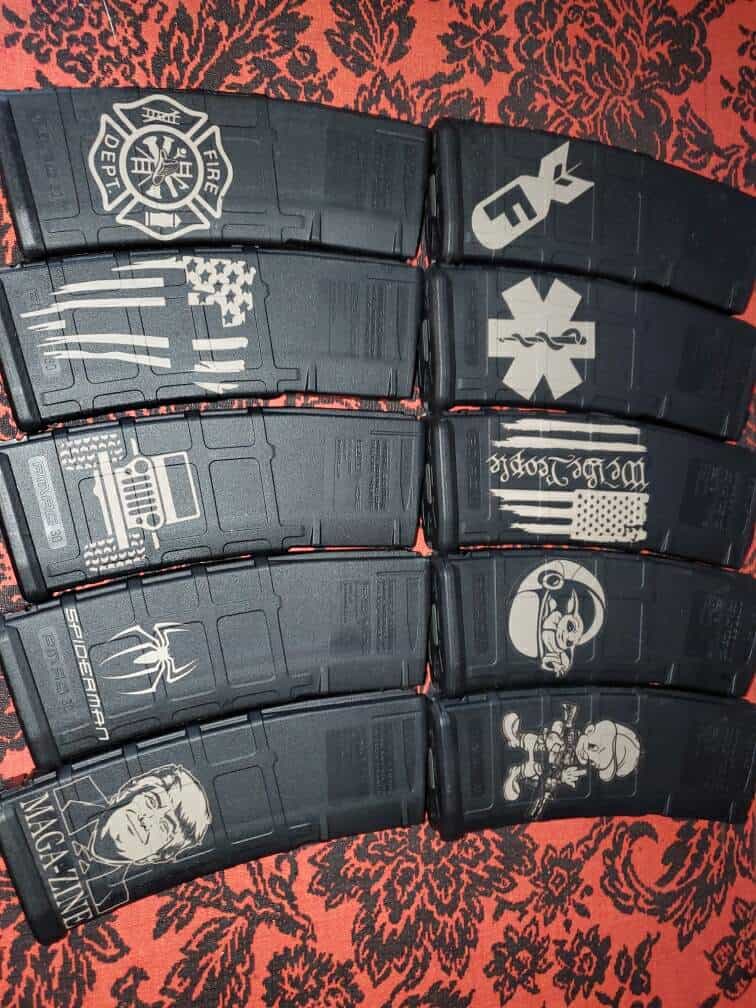 Here is some example work we do! If you would like to get something custom made then contact us.Kydex IWB/OWB HolstersLaser engraved AR mags and charging handles IWB Holsters Charging Handles OWB Holsters AR Mags